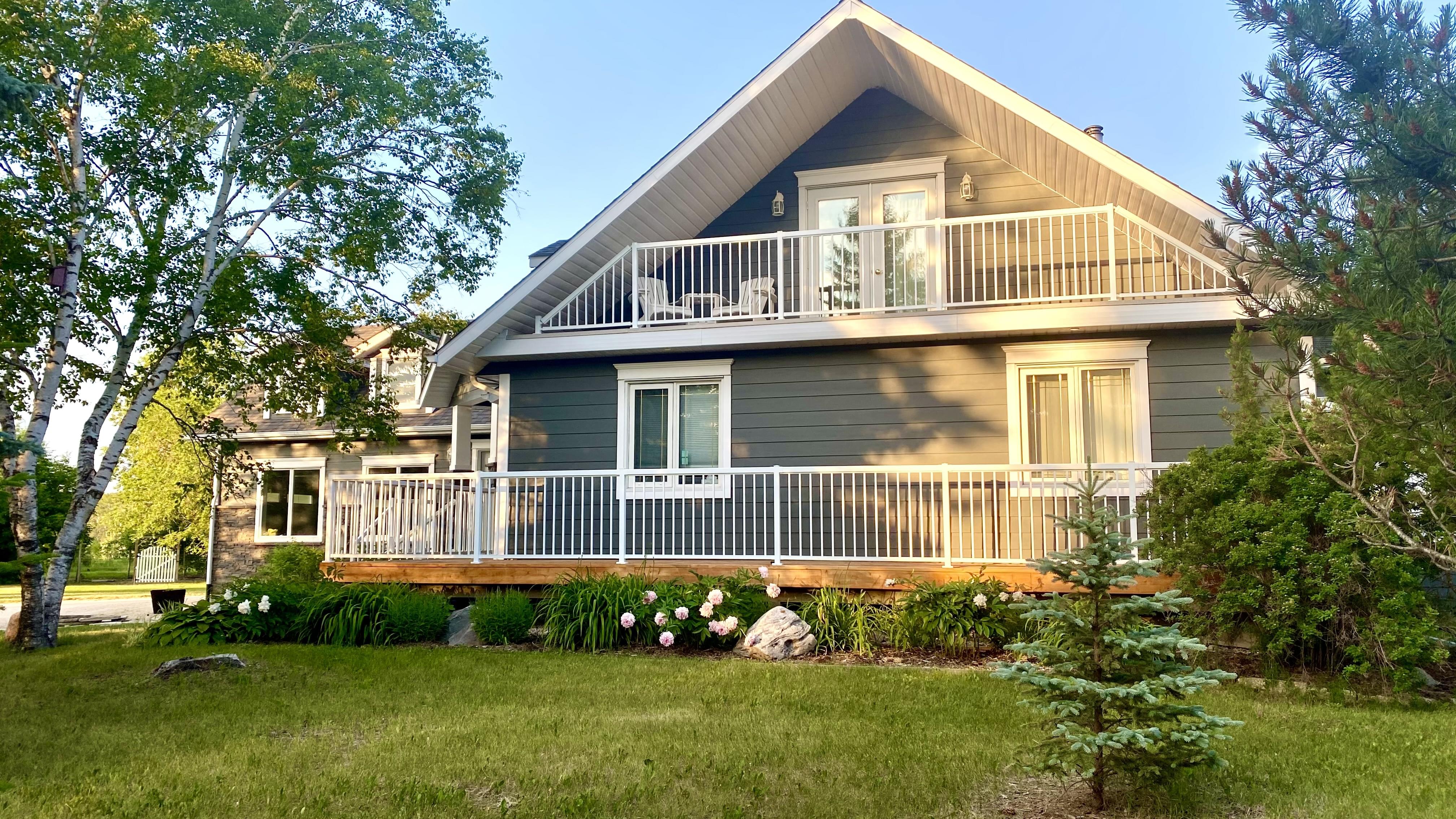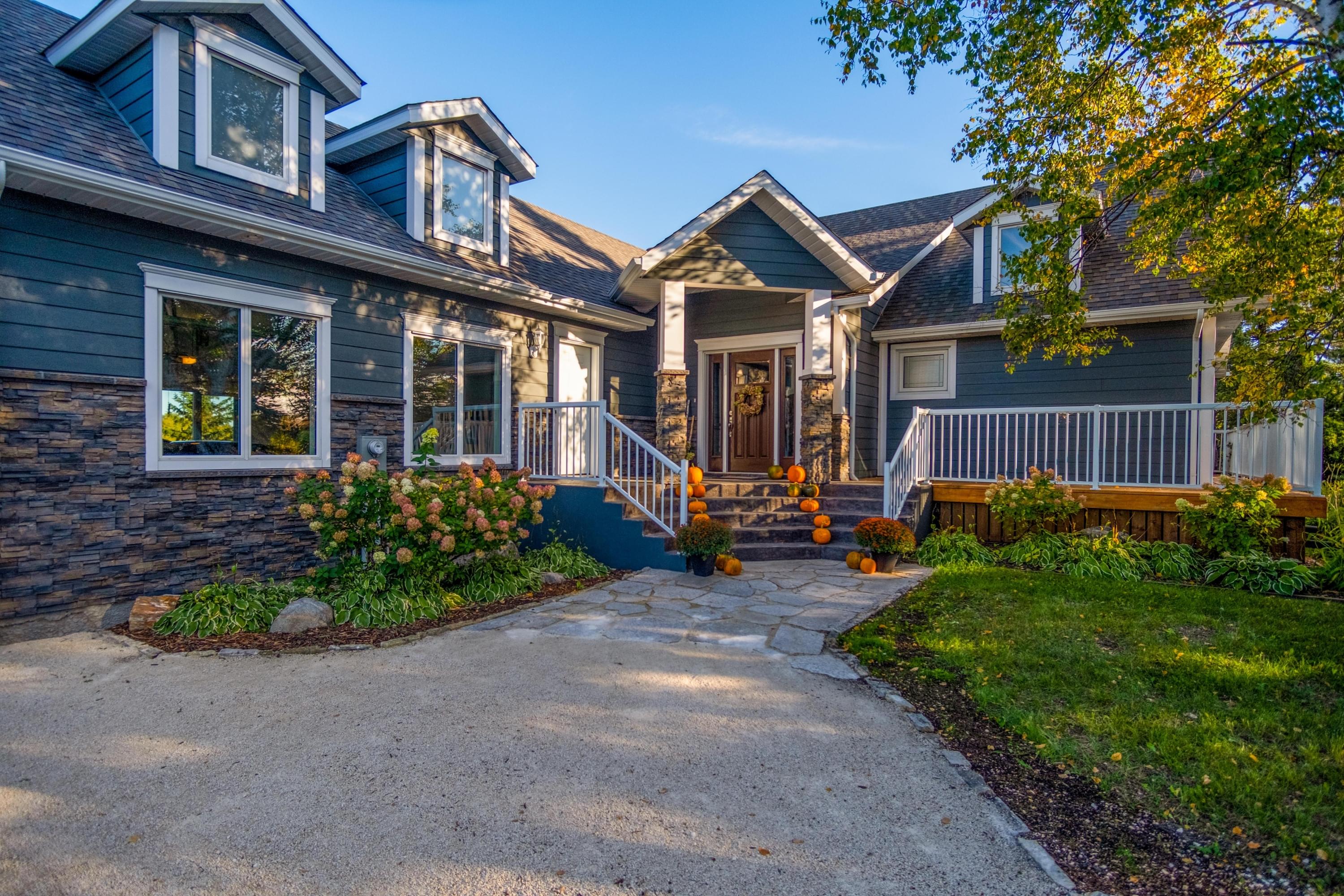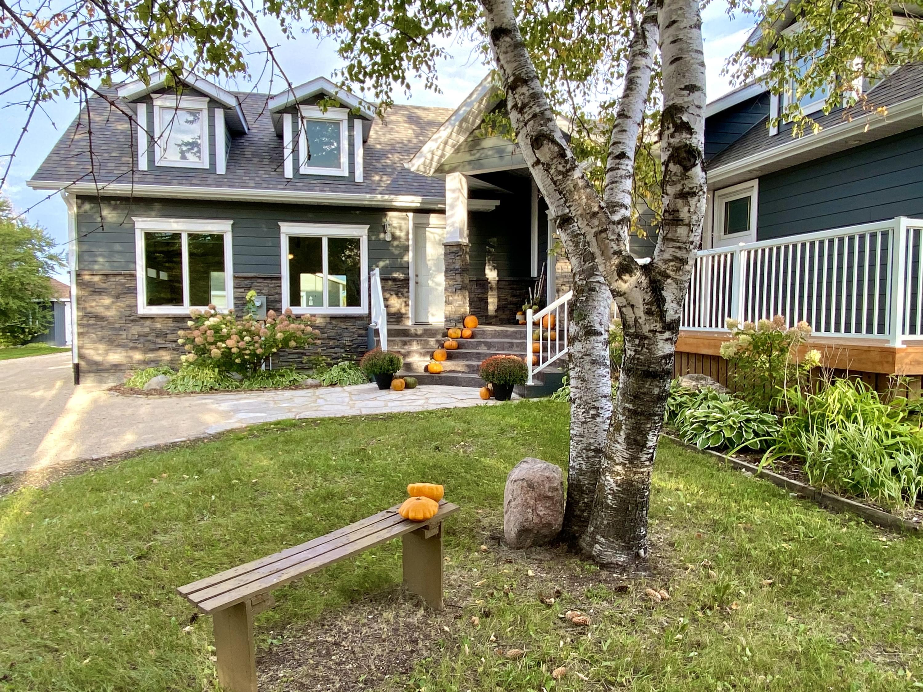 The fully finished lower level offers a huge guest bedroom, 3-pc bathroom, rec room area, as well, as storage rooms and a 3-person pine sauna. The original part of the home was built in 1976 and has been fully remodelled down to the studs, the addition was completed by Schulz Construction Inc in 2013/2014. This includes the entire exterior redone with James Hardie board siding, Barkman Concrete stone, including pillars at the front of the driveway, 35 year fibreglass shingles, stamped concrete front entry, as well as, wraparound, tiered cedar deck.