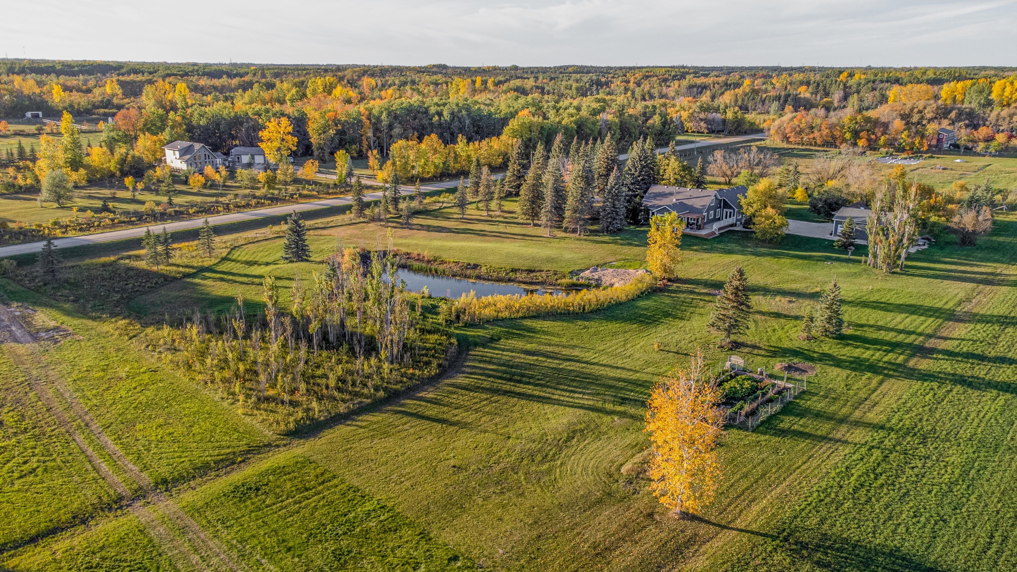 20 private acres with mature trees, pond, Gardens, Unsprayed alfalfa field