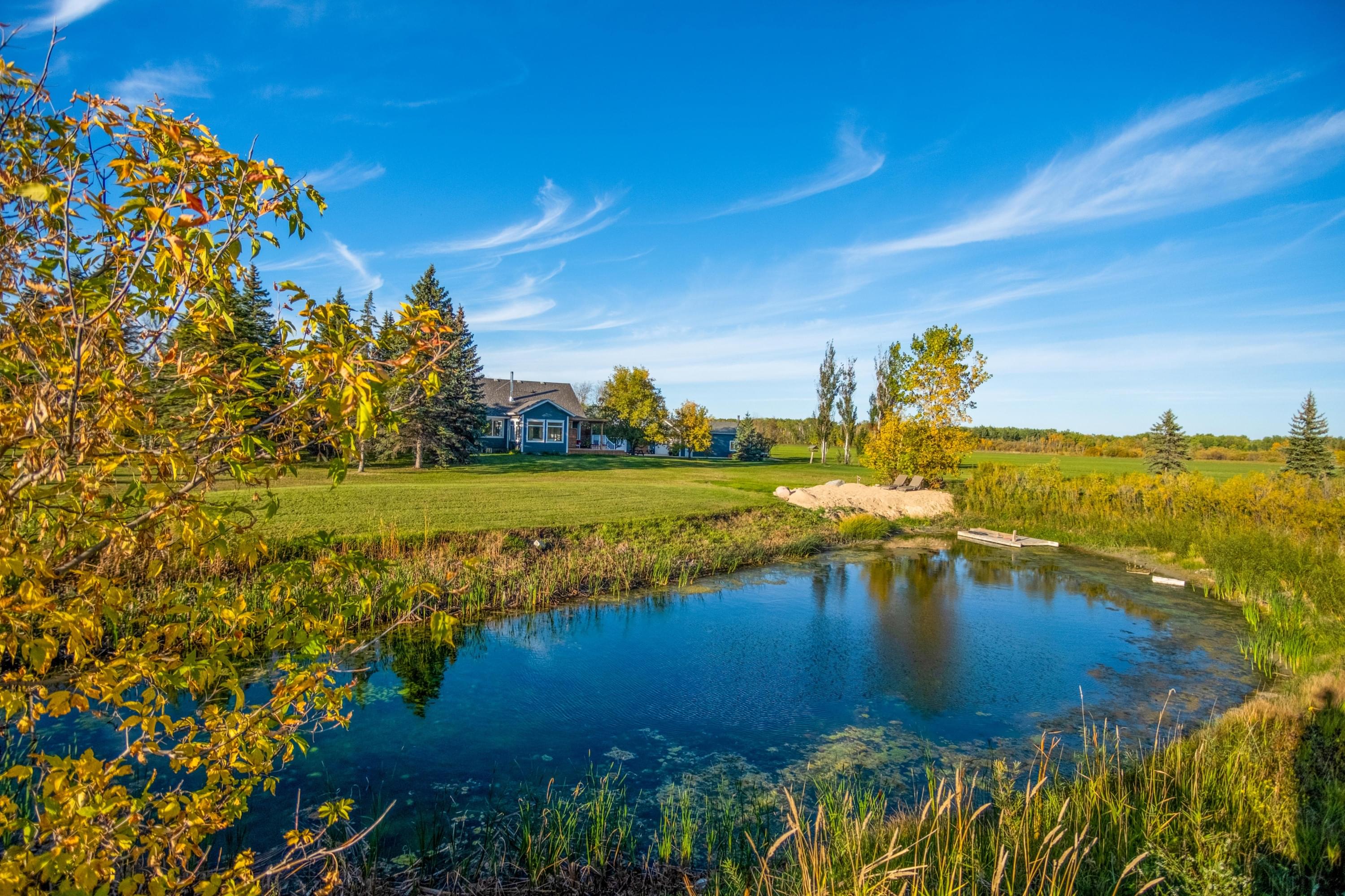 40 Amp sub panel and 240 Volt, a large wood shed with chicken coop and fencing, garden areas, as well as, a natural trout pond offering spectacular sunset views. Approx. 15 acres are in natural, organic alfalfa. The property has not been treated with any chemicals or roundup since approx. 2012 and is a haven to Canada geese in spring and fall, lots of deer, various birds including hummingbirds and goldfinches, cranes, kingfishers, turtles, and more.
